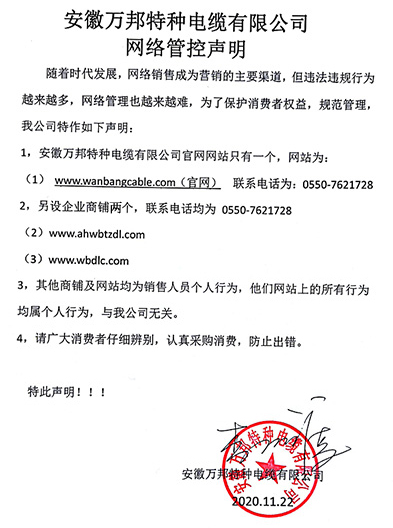 鄭重聲明:安徽萬邦特種電纜有限公司官方網站為:www_wanbangcable_com.sfvdg.cn,除此之外無任何子網站或合作網站,其余均為假冒偽劣。電話:0550-7621728 13485756353 地 址:安徽省天長市滁州高新技術產業開發區經四路29號